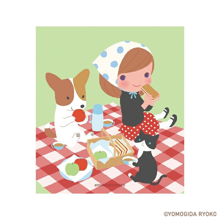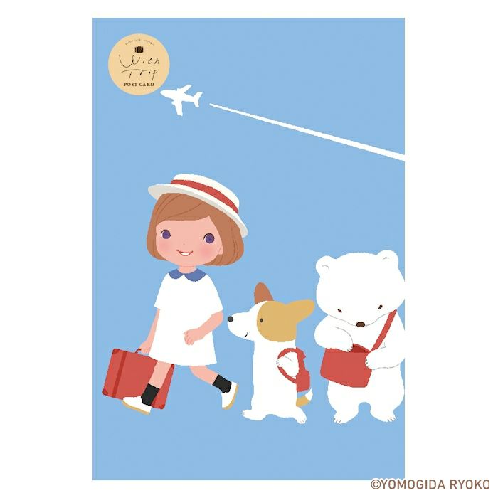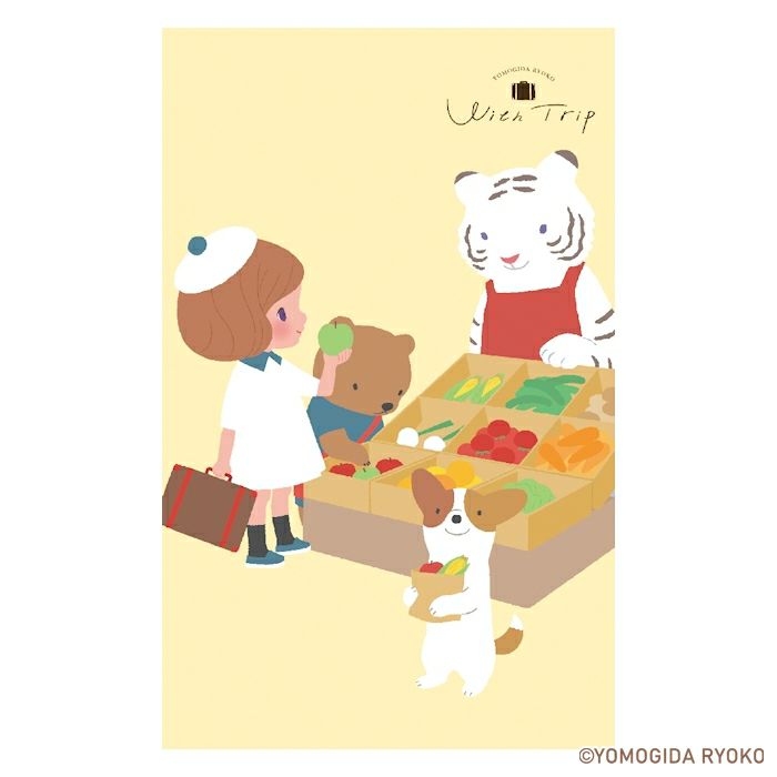 女の子とどうぶつたちがいっしょに旅をしているほっこりかわいいイラストに注目です!